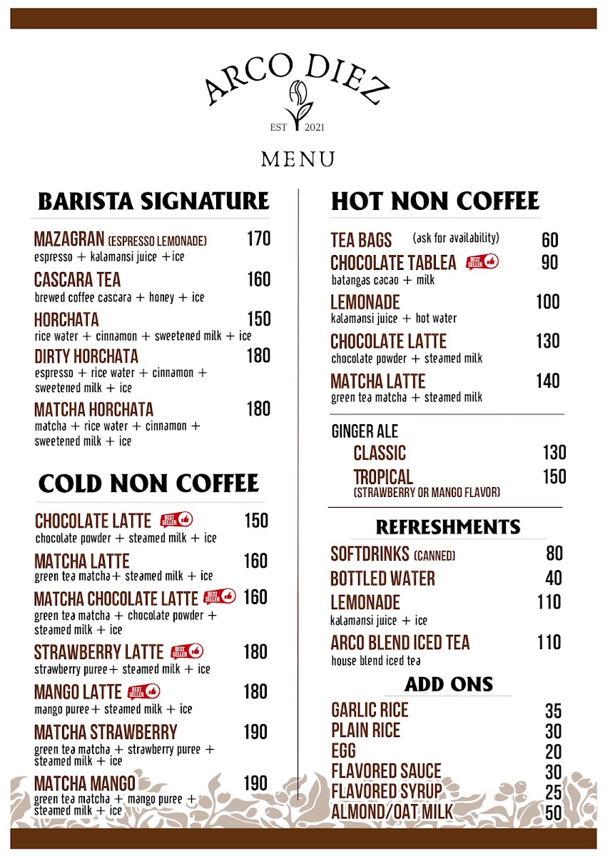 Whether you're looking for a cozy spot to unwind, catch up with friends, or simply escape the hustle and bustle of Naga City, Arco Diez Cafe is the place to be. Its inviting atmosphere and mouthwatering menu make for a delightful experience that you won’t want to miss.