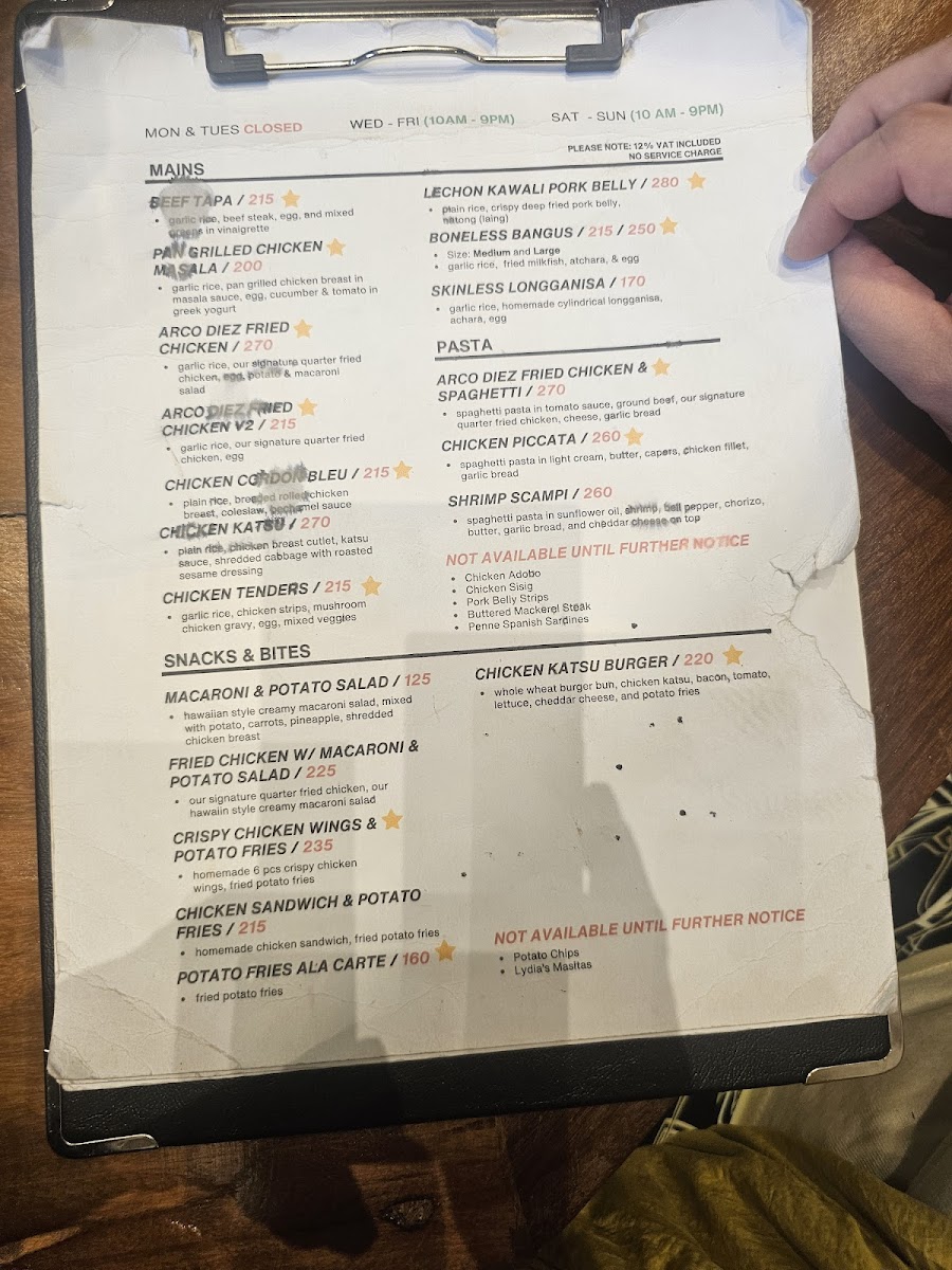 When it comes to the menu, Arco Diez Cafe offers an exciting blend of comfort food and specialty drinks. One of the crowd favorites is the Chicken with Spag; a dish that encapsulates the essence of Filipino comfort food. Imagine sinking your teeth into perfectly crispy chicken, revealing juicy, tender meat inside, paired with spaghetti that balances just the right amounts of sweetness and savory goodness—a dish that truly hits all the right notes.